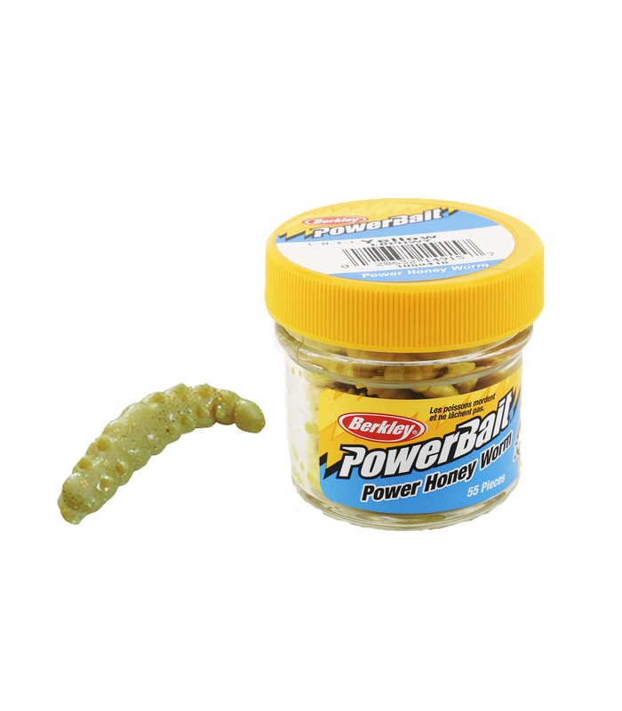 Berkley Powerbait Honey worm imitazione della camola del miele in plastica morbida aromatizzata, 2,5 cm di lunghezza. Scent molto potente. Le camole finte Berkley aromatizzate sono una delle migliori esche artificiali “in gomma” di sempre per la pesca della trote.