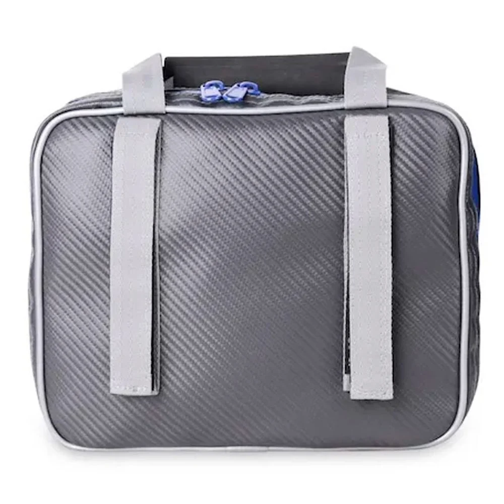 – Tessuto Carbon Look da 500 denari, tasche interne con chiusura a zip e maniglia in neoprene con una sola mano.