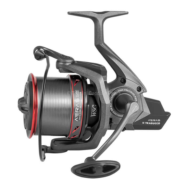 Trabucco Aeras Surf è un mulinello da surfcasting e Big Pit progettato per offrire leggerezza, potenza e affidabilità per la pesca a lunga distanza. Il suo design Hybrid Body combina materiali leggeri e resistenti per un corpo robusto ma non pesante. È dotato di 8 cuscinetti a sfera Long Life schermati in acciaio inox che garantiscono fluidità e durata nel tempo, anche in ambiente marino. Vengono fornite due bobine V-Spool Design in alluminio superleggero di differente capacità, ideali per l’utilizzo di fili di diverso diametro e per adattarsi a diverse situazioni di pesca. I dischi della frizione sono rivestiti in PTFE per una maggiore scorrevolezza e precisione nella regolazione. Il sistema di trasmissione Worm Shaft Gear con Slow Oscillation System assicura un imbobinamento perfetto del filo, riducendo al minimo i grovigli e ottimizzando le performance di lancio. L’alberino principale in acciaio inox conferisce robustezza e resistenza alla corrosione. La frizione micrometrica Smart Drag permette una regolazione precisa e progressiva, ideale per gestire combattimenti con pesci di taglia. Il rullino guidafilo AS (Anti Twist System) rivestito in titanio previene la torsione del filo, mentre la manovella Power-Fight con sistema di blocco Positive Screw-Lock e manopola ergonomica Soft Touch offre una presa sicura e confortevole durante il recupero.